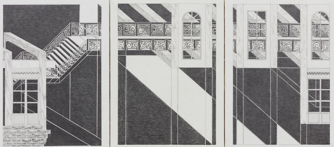 That is how beautifully the seemingly incompatible media and the mixed architectural styles of modern history within the works come together.