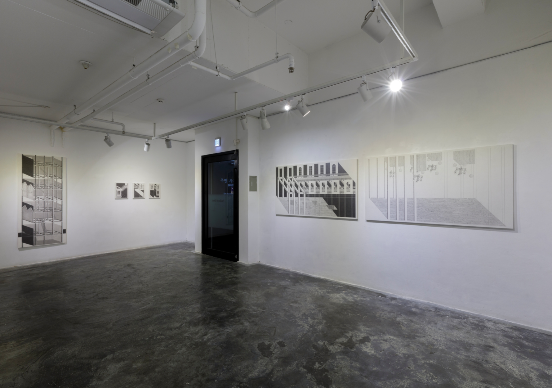 First of all, portraying the old downtown of Gunsan calmly in black and white was an excellent choice. In addition, the idea of the past and the present being represented respectively by jangji paper and mechanical pencil feels entirely fitting. Her works call to mind people from another time, dressed in hanbok and wearing glasses. Something confusing, yet strangely harmonious. It even creates the illusion that, like the time-slip stories popular these days, the artist herself may have traveled back to Gunsan in the 1900s with nothing but a mechanical pencil, completed her work there, and then returned to the present.